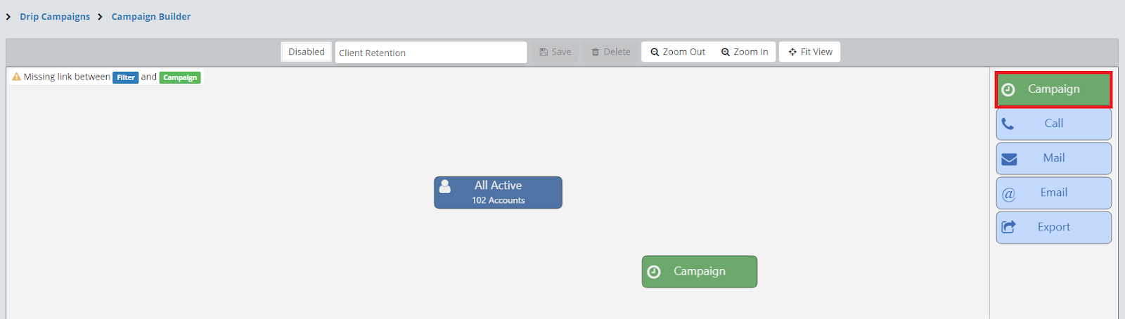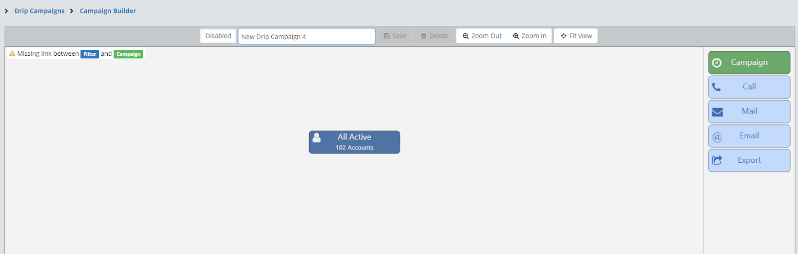 Next, you will add in the campaign. This is where you create the rules for what needs to happen in order for an account to receive this email, call, or mail, and when it is going to send out.