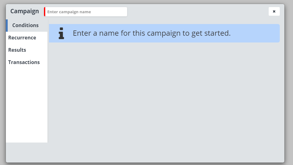 In the results tab you'll be able to see any clients who could be included in this campaign if you were to start running it today. In the transactions tab you'll be able to see information on every time in the past this campaign has ran including dates and list of what clients were included on that day.