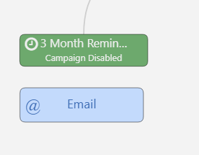 To do this, drag and drop the light blue “Email” From the right hand side menu on to the main part of the campaign Builder. It will automatically attach to any open campaigns.